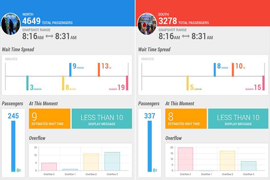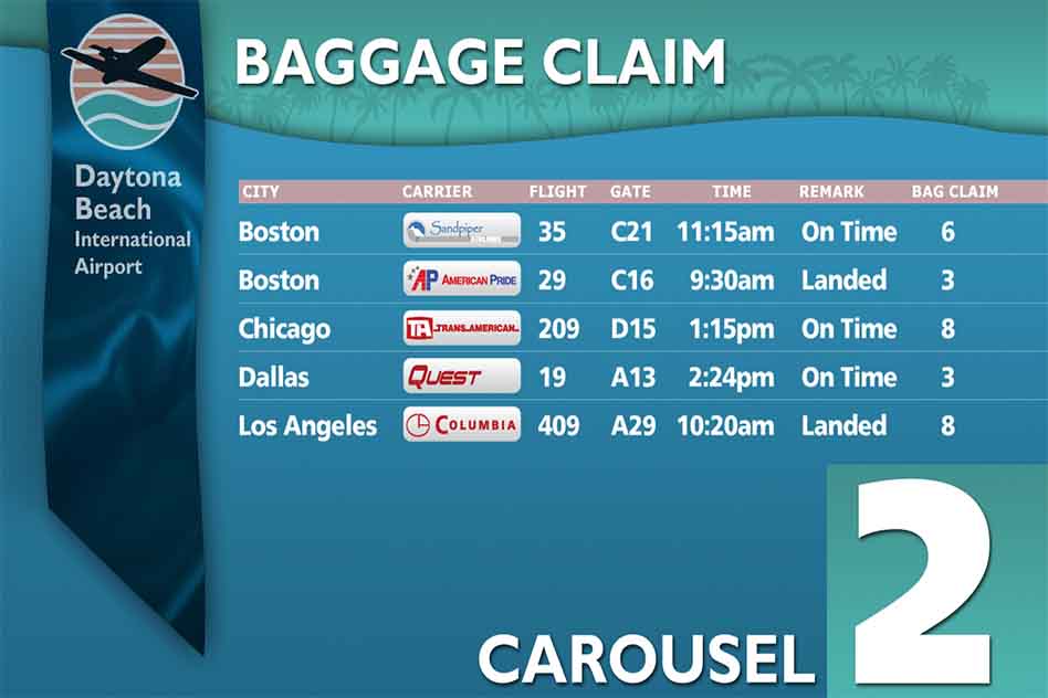The Aero360 Suite allows airport authorities to easily manage and display real-time flight information, baggage information and gate information to airport passengers. The solution can integrate with any airline interface or flight data source to update expected departure times and accept changes made by authorized staff using the system’s web-based interface.
