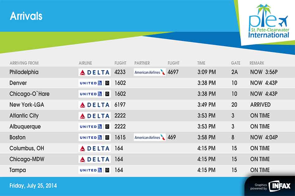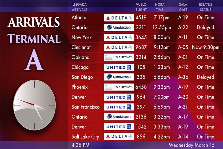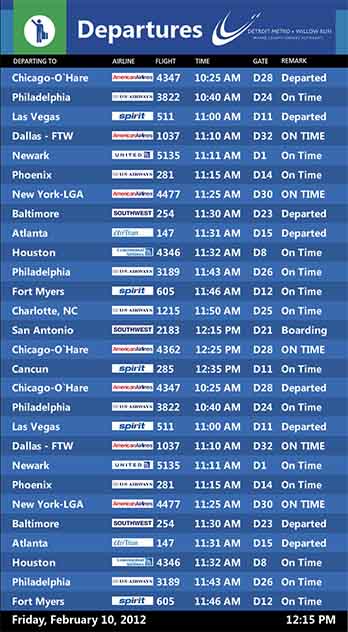 The system can also display visual paging messages, urgent airport information and other public announcements. With optional add-ons, any flight, baggage, or gate information screen can show weather forecasts, local and national news headlines, or any other information available through an RSS feed. Aero360 can also publish real-time airline data to the airport’s website, allowing passengers to check arrivals, departures, gate changes and flight status.