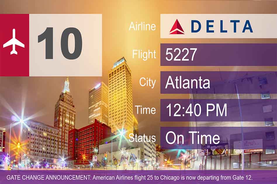 Engage is a digital signage solution that allows users to easily create directional signage, personalized messages, digital directories, and advertisements to display on monitors or video walls in the airport. The solution’s user-friendly interface is equipped with a library of images, templates and more to give users the tools they need to reach airport passengers.